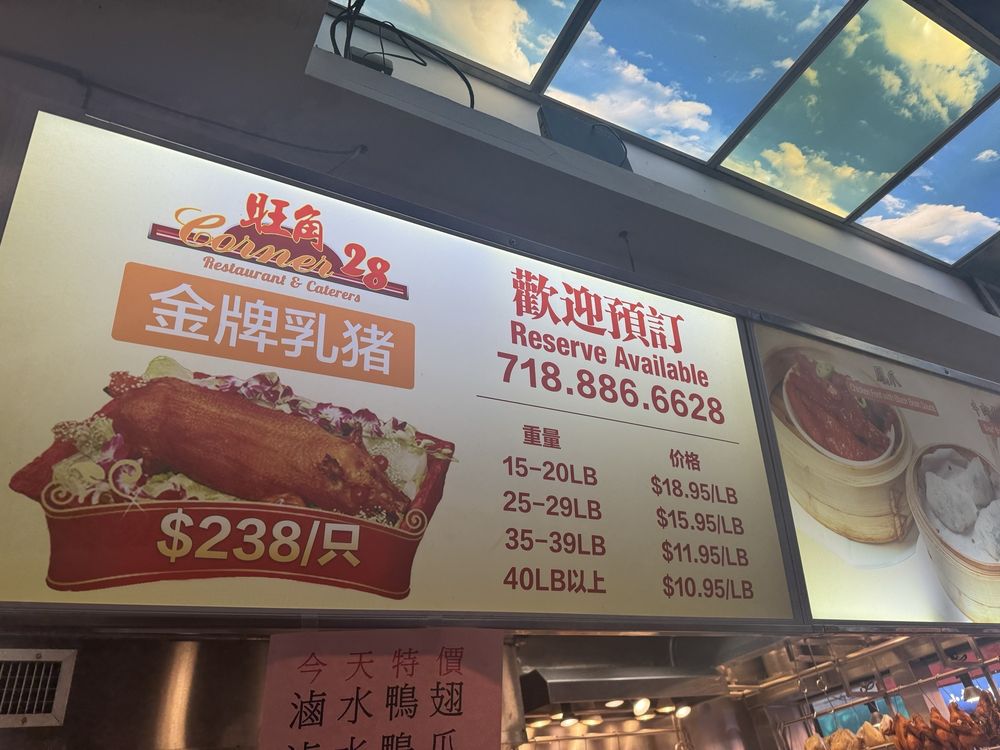 Corner 28 is a renowned Chinese restaurant in Flushing, NY, known for its delectable barbecue meats. The menu offers a variety of options, including succulent roast pork, juicy duck, and flavorful char siu. Customers rave about the quality control and generous portions, with dishes like the San Bao Fan receiving high praise for its bok choy accompaniment. The establishment operates as a small shop with takeaway service only, making it a convenient choice for on-the-go dining. Prices are incredibly reasonable, with favorites like the char siu rice box available at a mere $7.84. Overall, Corner 28 impresses with its flavorful offerings and value for money, making it a must-visit for Chinese barbecue lovers in the area.